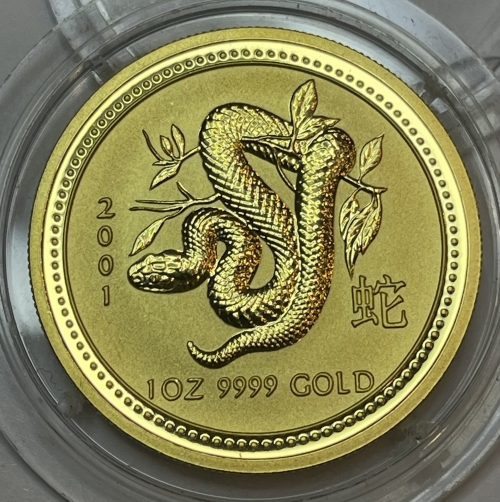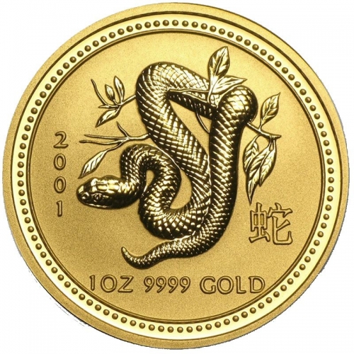 • Золотая монета из серии "Лунный календарь - I" от Пертского монетного двора Австралии весом в 1 тройскую унцию посвящена символу 2001 года - Змее.