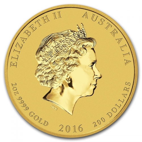 • На аверсе помещено изображение профиля королевы Елизаветы II. Сверху надпись ELIZABETH II и AUSTRALIA. Внизу по ободу вес монеты (2 oz - две тройские унции), проба (9999 gold), год выпуска (2016) и номинал (200 DOLLARS - 200 долларов).