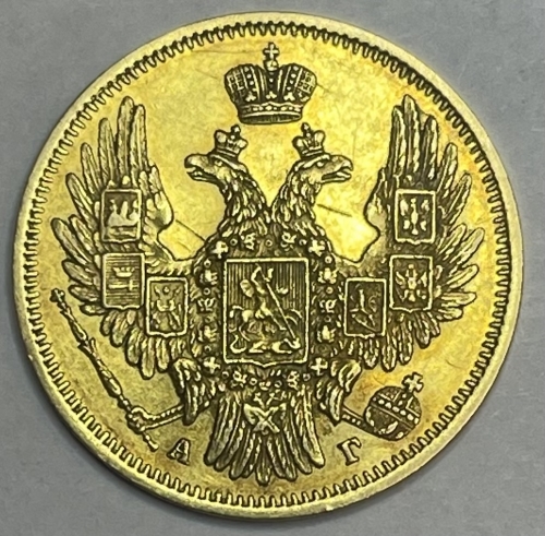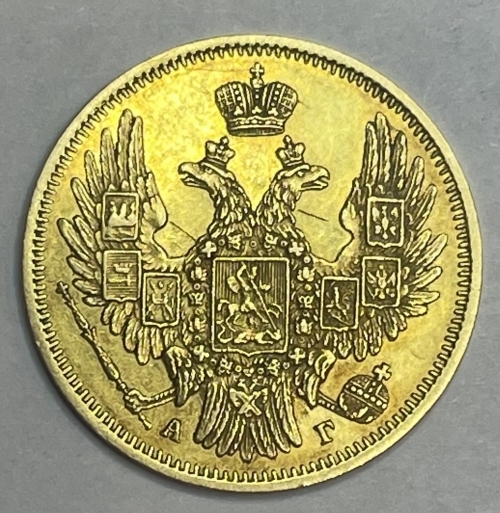 Золотая монета 5 рублей 1849г. СПБ-АГ