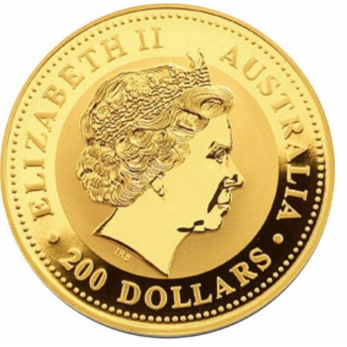 • Аверс: На аверсе помещено изображение профиля королевы Елизаветы II. Сверху надпись ELIZABETH II и AUSTRALIA. Внизу по ободу вес монеты (2 oz - две тройские унции), проба (9999 gold), год выпуска (2004) и номинал (200 DOLLARS - 200 долларов).