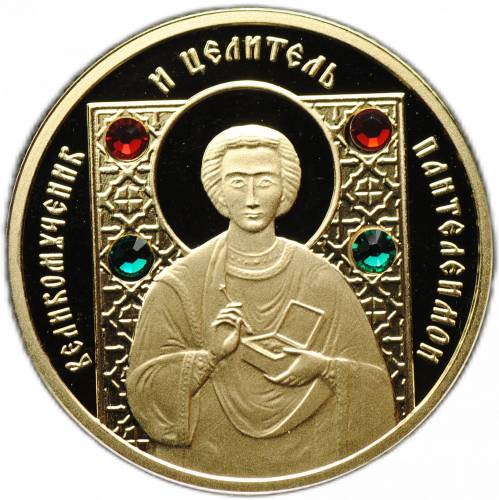 Золотая монета "Великомученик и целитель Пантелеймон", 50 рублей, 2008 год